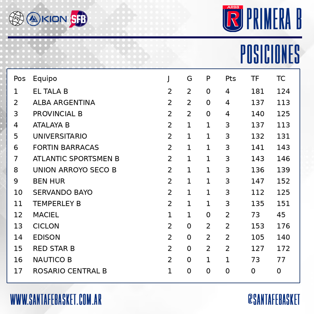 De esta manera, El Tala B, Provincial B y Alba Argentina encabezan las posiciones tras las dos primeras jornadas, en un torneo que se perfila competitivo y muy parejo en su arranque.