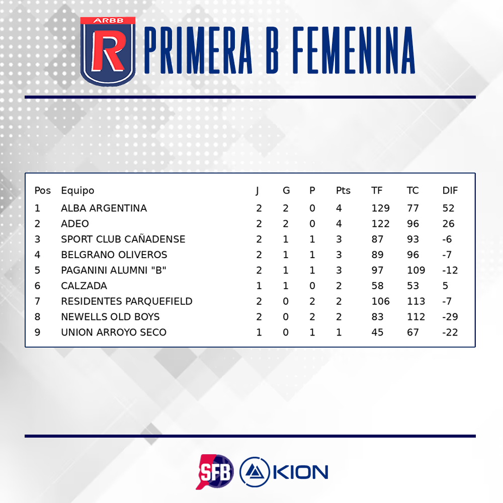 Arriba están con puntaje ideal , Alba de Maciel y ADEO , ambos con 2-0