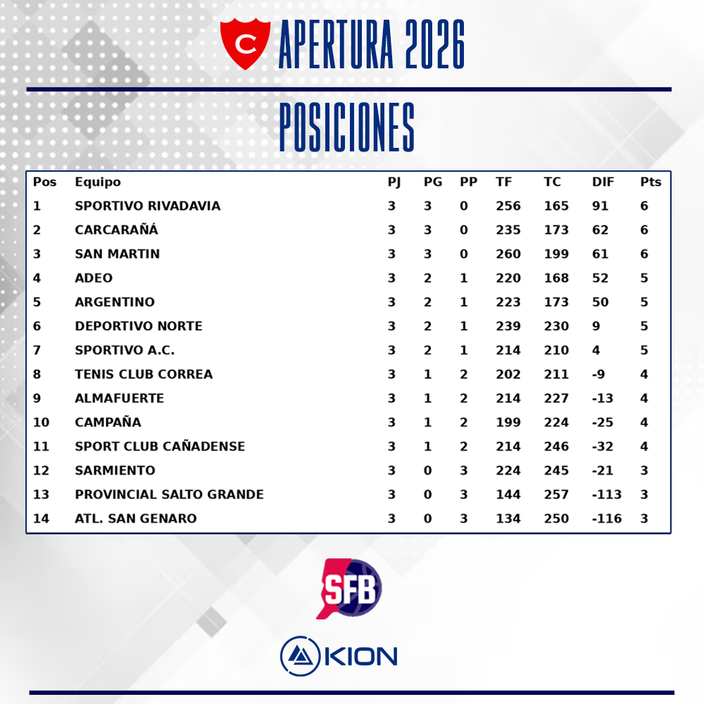 Este domingo se completó la tercera fecha del Apertura. Deportivo Norte se hizo fuerte en casa y sumó una nueva victoria al imponerse por 84 : 67 sobre Tenis Club Correa, en un duelo donde el local mostró solidez y variantes ofensivas para marcar diferencias.
