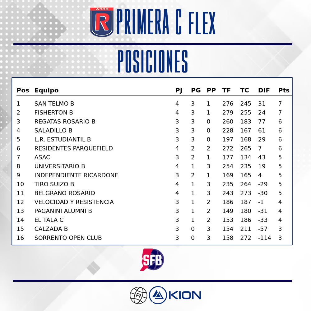 Fisherton B logró un gran triunfo fuera de casa al imponerse ante Tiro Suizo B por 84 : 91, en un partido de alto goleo. Las figuras del ganador fueron Iván Kraier con 24 puntos, acompañado por Lautaro Cordero con 15 puntos y 9 rebotes y Juan Pablo Grosso con 16 puntos y 9 rebotes. En el local se destacaron Martín Obregón con 20 puntos y 11 rebotes y Agustín Obregón con 17 unidades.