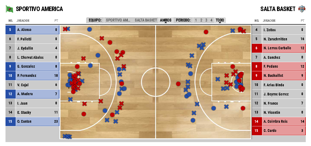 A pesar de esto Salta encontraba en el despliegue de Zurschmitten y en la versatilidad de Lemos formas de colocarse arriba. Hasta que se hizo presente el bombardero de Goya Germán González que con su aporte revirtió el tramite (54-51) . De no ser por Buchaillot con una acción de 2+1 América iba a afrontar los últimos diez con ventaja, no fue así y la progresión indicó (56-57)