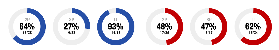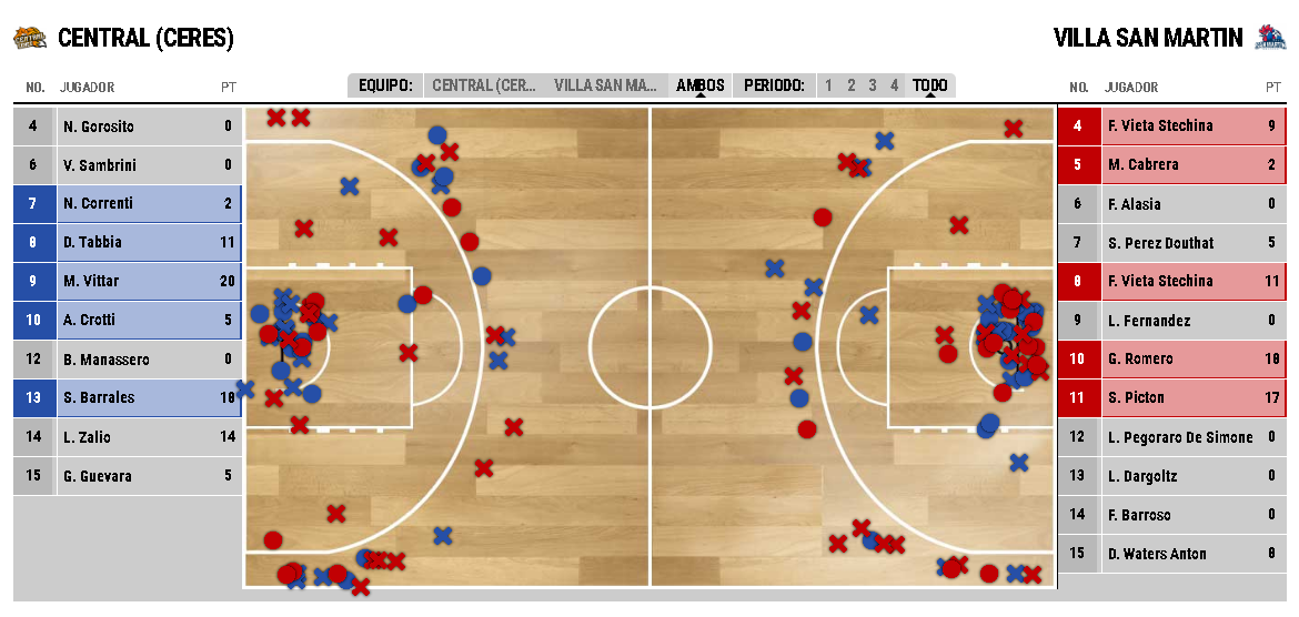 Entre los principales anotadores sobresalen Omar Cantón que convirtió 23 puntos y Pablo Fernández que aportó 19. Además el interno del Verde bajó 9 rebotes totalizando 25 de valoración final . Para los Infernales Nicolas Zurschmitten anotó 16 y Andre Coimbra Reis 14.