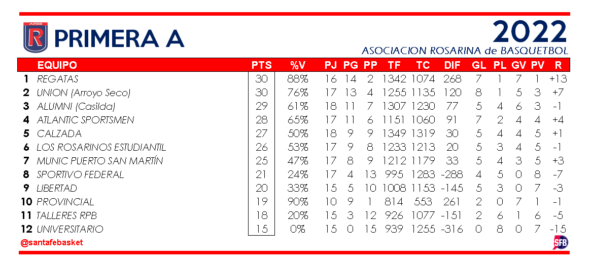 En otros resultados, UNIÓN de Arroyo Seco en Casilda se impusó 68 : 78 ante ALUMNI conservando así el segundo lugar detrás de Regatas. Fue el septimo éxito en fila del conjunto de Luciano Martin
