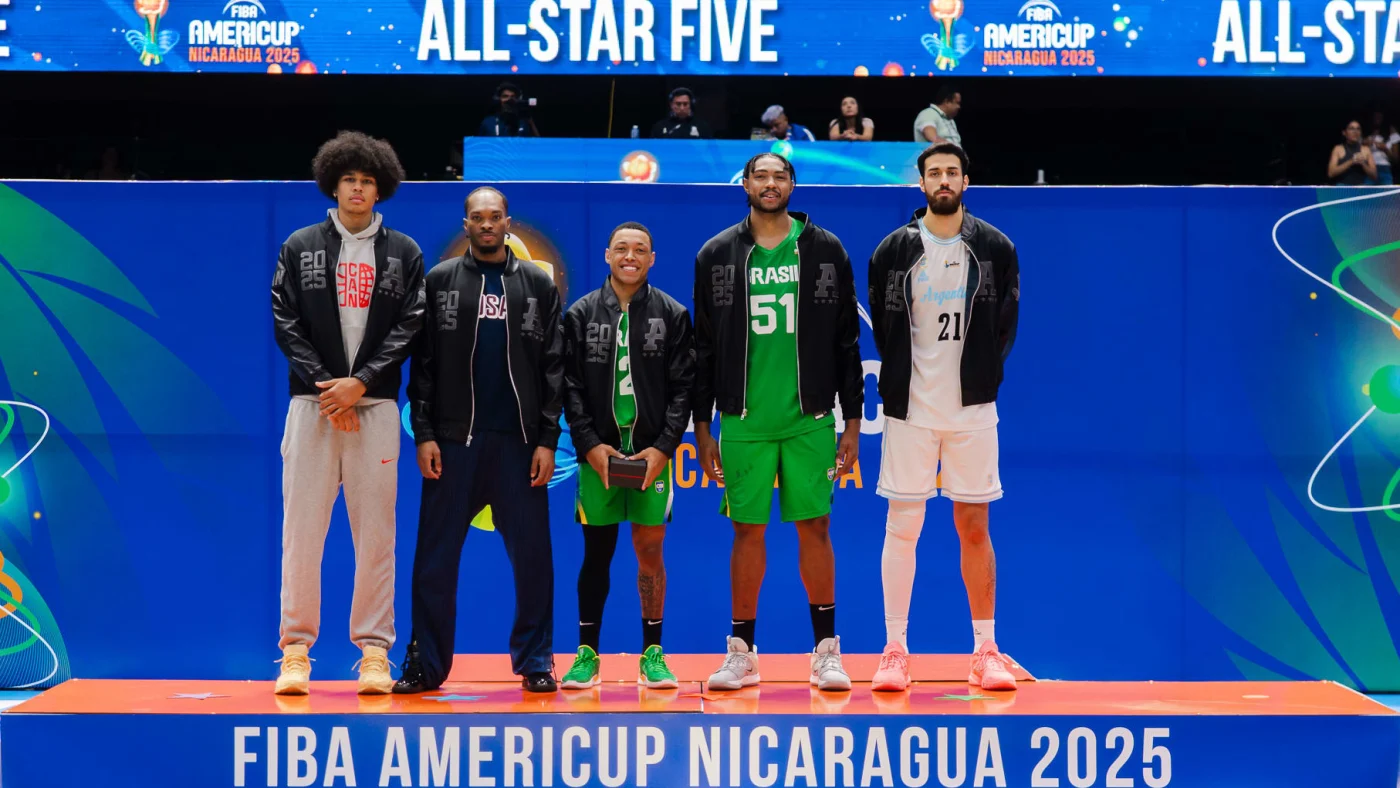 Los brasileños Yago Santos y Bruno Caboclo encabezaron el Quinteto Ideal del FIBA AmeriCup 2025 tras liderar a su país hacia su quinta medalla de oro continental. Santos fue elegido Jugador Más Valioso después de aportar 14 puntos y 5 asistencias en la Final contra Argentina. El base de 26 años terminó tercero en eficiencia (20,0) con promedios de 17,8 puntos, 6,2 asistencias y 3,3 rebotes. El conductor de Brasil tuvo una efectividad del 48,7 por ciento en triples y finalizó quinto en anotaciones y cuarto en asistencias en el torneo.