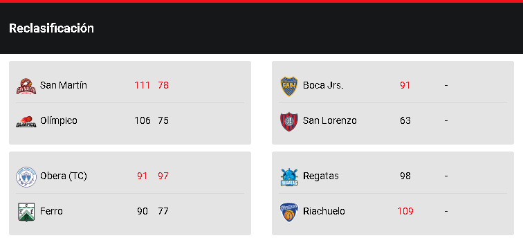 El Xeneise derrotó al Ciclón 87 : 78 adjudicándose la serie 2-0 mientras que el Remero impuso su localia ante Riachuelo venciendo 103 : 72 , igualando la contienda y a la vez forzando el tercer encuentro de la serie que se desarrollará el jueves en el «José Jorge Contte» de los correntinos.