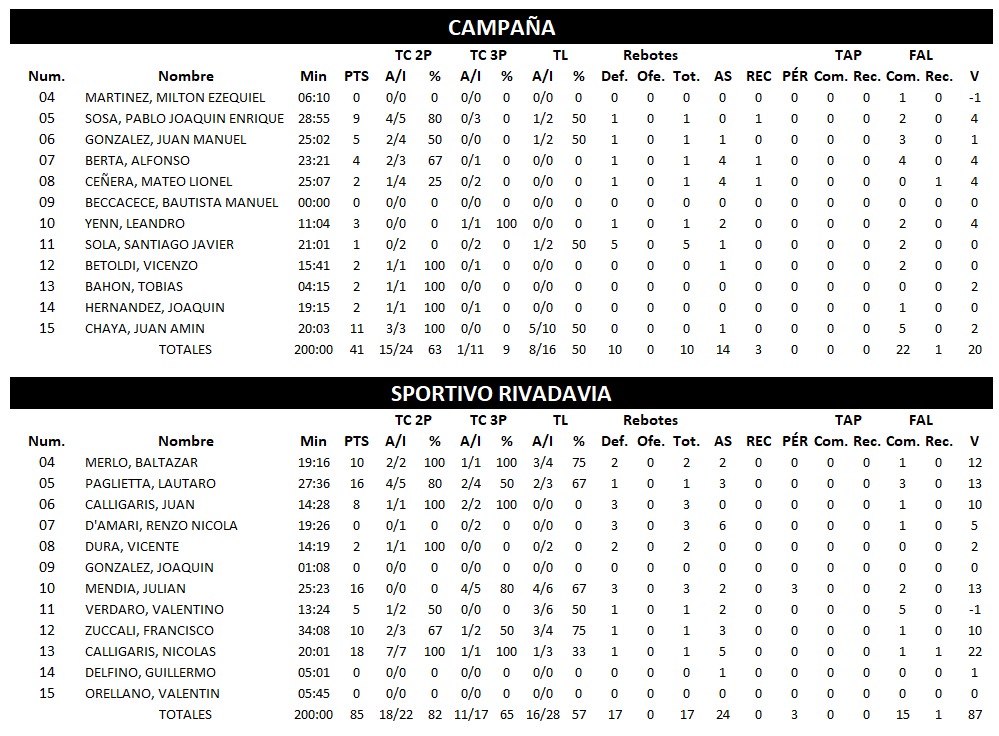 A domicilio Sportivo Rivadavia de San Genaro obtuvo un categórico triunfo de 41 : 85 ante Campaña de Carcaraña en el desenlace de la tercera fecha del Pre Federal de la Cañadense.