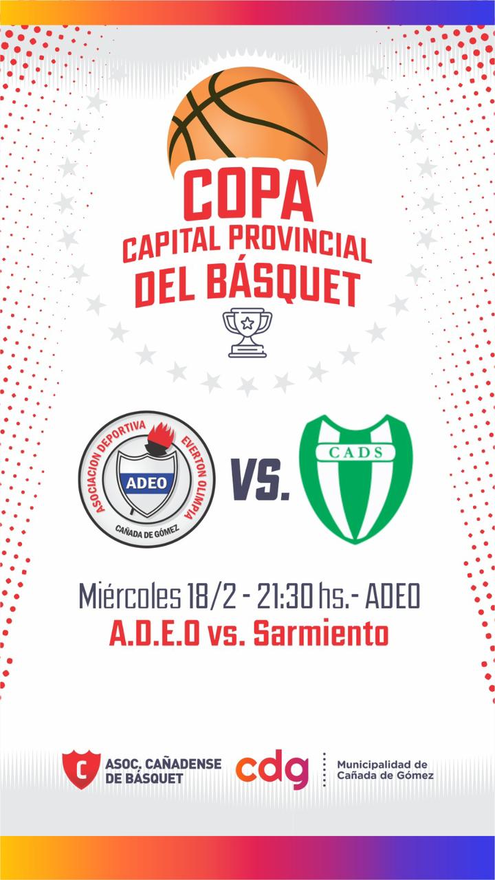 Con el auspicio de la Municipalidad de Cañada de Gómez junto a la Asociación Cañadense , los tres clubes de la ciudad disputarán la Copa Capital Provincial del Basquet. Será los días miércoles 18, viernes 20 y domingo 22 en las tres canchas.
