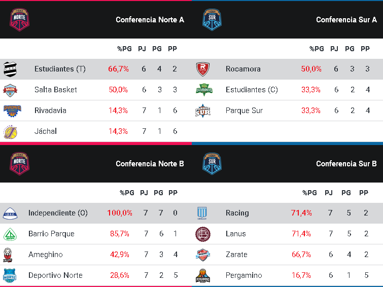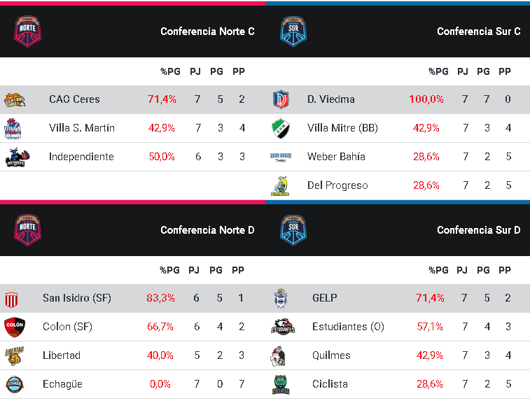 Catorce partidos entre Conferencia Norte y Sur se jugaron este domingo por una fecha más de la Liga Argentina.