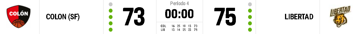 Con diez unidades de Eydallin en el último cuarto y otros seis tantos importantes de Simondi, Libertad logró llevar el final del partido a un desenlace cerrado. Zulberti puso al frente a Colón, pero Manuel Alonso, que hasta allí había fallado los cinco triples que había intentado, metió una bomba desde 7 metros para darle el triunfo a falta de 5 segundos.