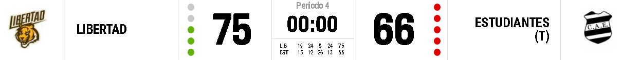Sin embargo Libertad encontró energía para dar vuelta las acciones, traccionó para tal fin y con una muestra de actitud llamativa se llevó el período 24 : 13 sellando su quinta victoria de la segunda fase . 75 : 66