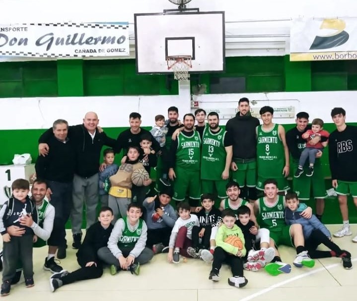 SARMIENTO (98) : Alegro 8, Bianco 8, De la Fuente J 9, Frontera 14, Beltramo 3, Gambone 14, Truant 5, Molón, P. Pirani 13, L . De la Fuente L 11, J. Pirani 13. – DT: Marcelo De la Fuente.-