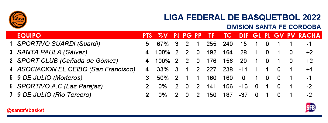 SPORTIVO SUARDI (85) : Correnti 15, Lizarraga 22, G.Fino 6, Ledesma 13, Rodríguez Seu 7 (fi) , Veliz 6, S. Andrione 6, N.Fino 10, Woisard 0 – DT: Andrés Poi.-