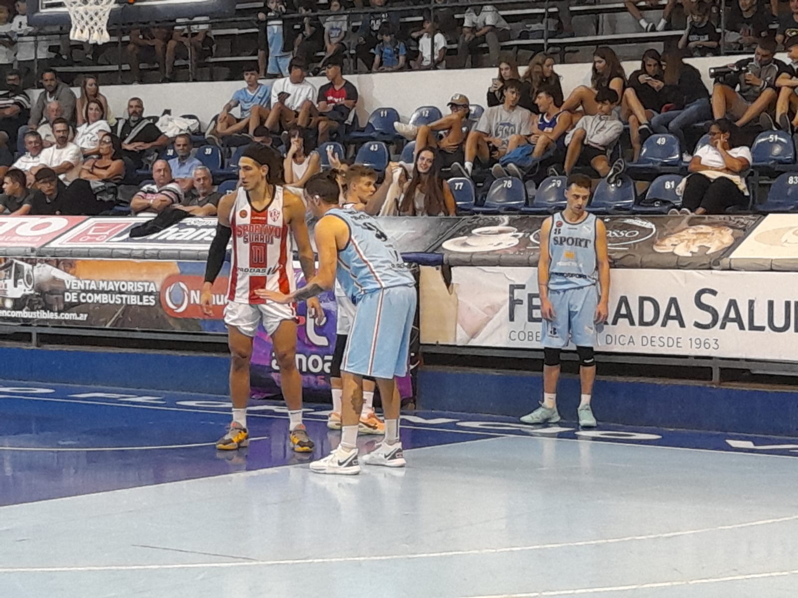 Ya en el complemento el desarrollo en el tercer cuarto seguía equilibrado, hasta que salió lesionado Delbon estuvo efectivo desde la línea de libres y en el otro costado Nahuel Fino con un 2+1 mantenía el marcador en 60 por bando. El juego de Sport volvió a tomar cuerpo cuando Montani Wortzel se hizo cargo de la ofensiva. El alero anotó 8 puntos que sirvieron para despegar al Celeste 68 – 64 marcador con que terminó el período.