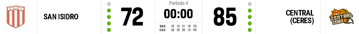 En un duelo de líderes, San Isidro cayó de local ante el escolta de la Conferencia Norte, Central de Ceres, por 72 : 85