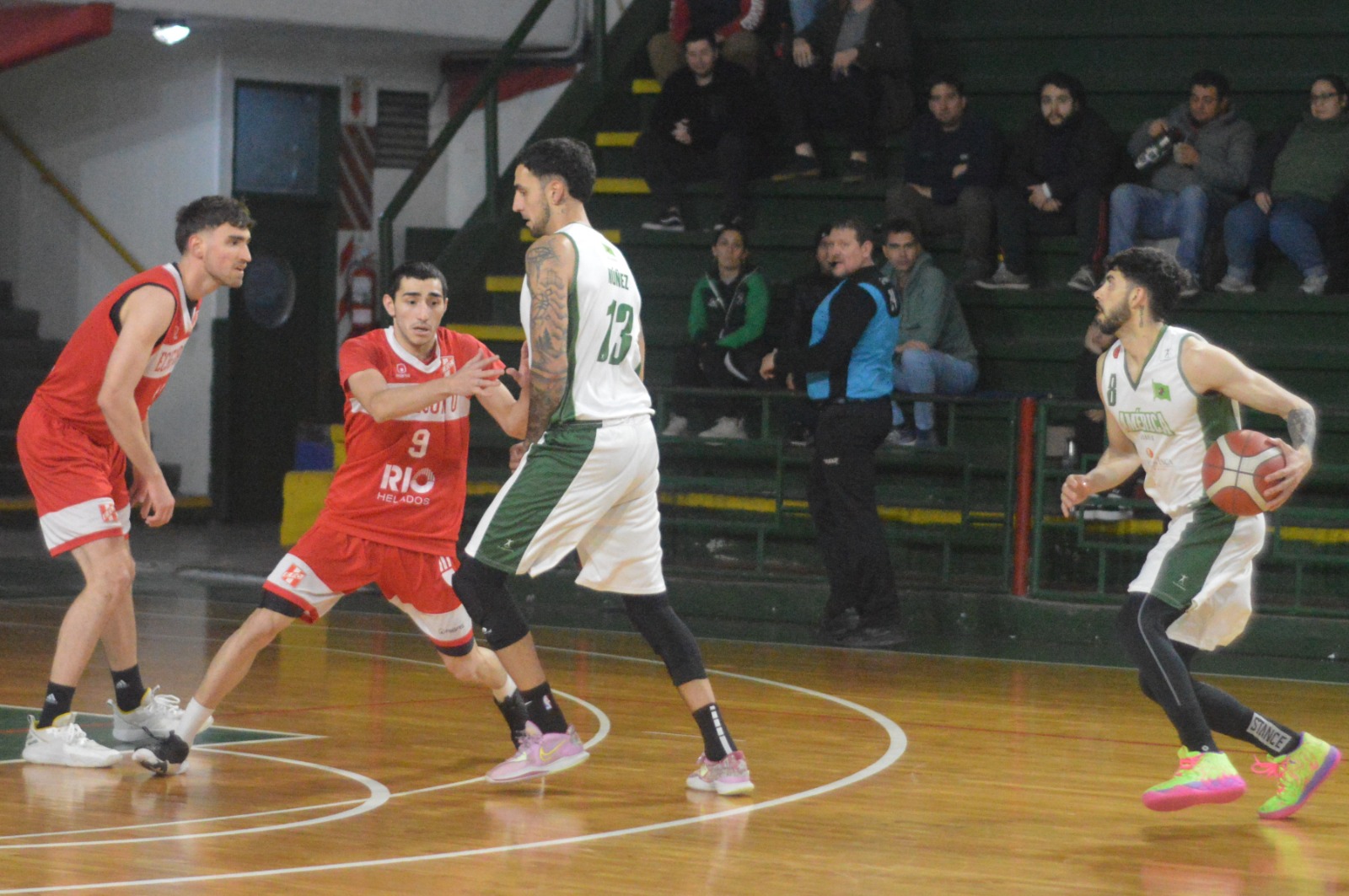 El base capitán del Verde tuvo números de 19 puntos , 8 asistencias y 30 de valoración mientras que Lucho marcó 27 unidades (5/12 T3) con 26 de valoración