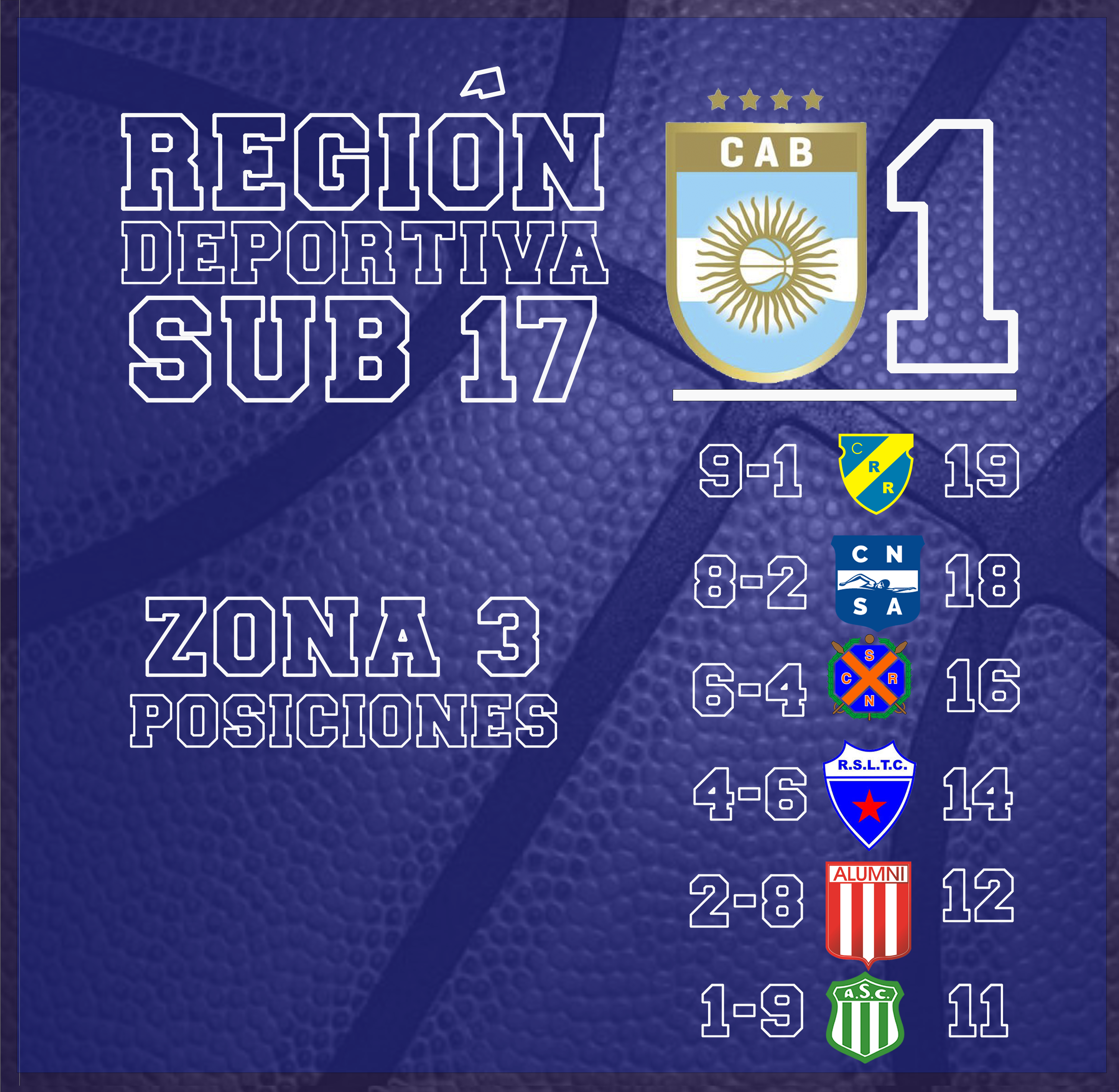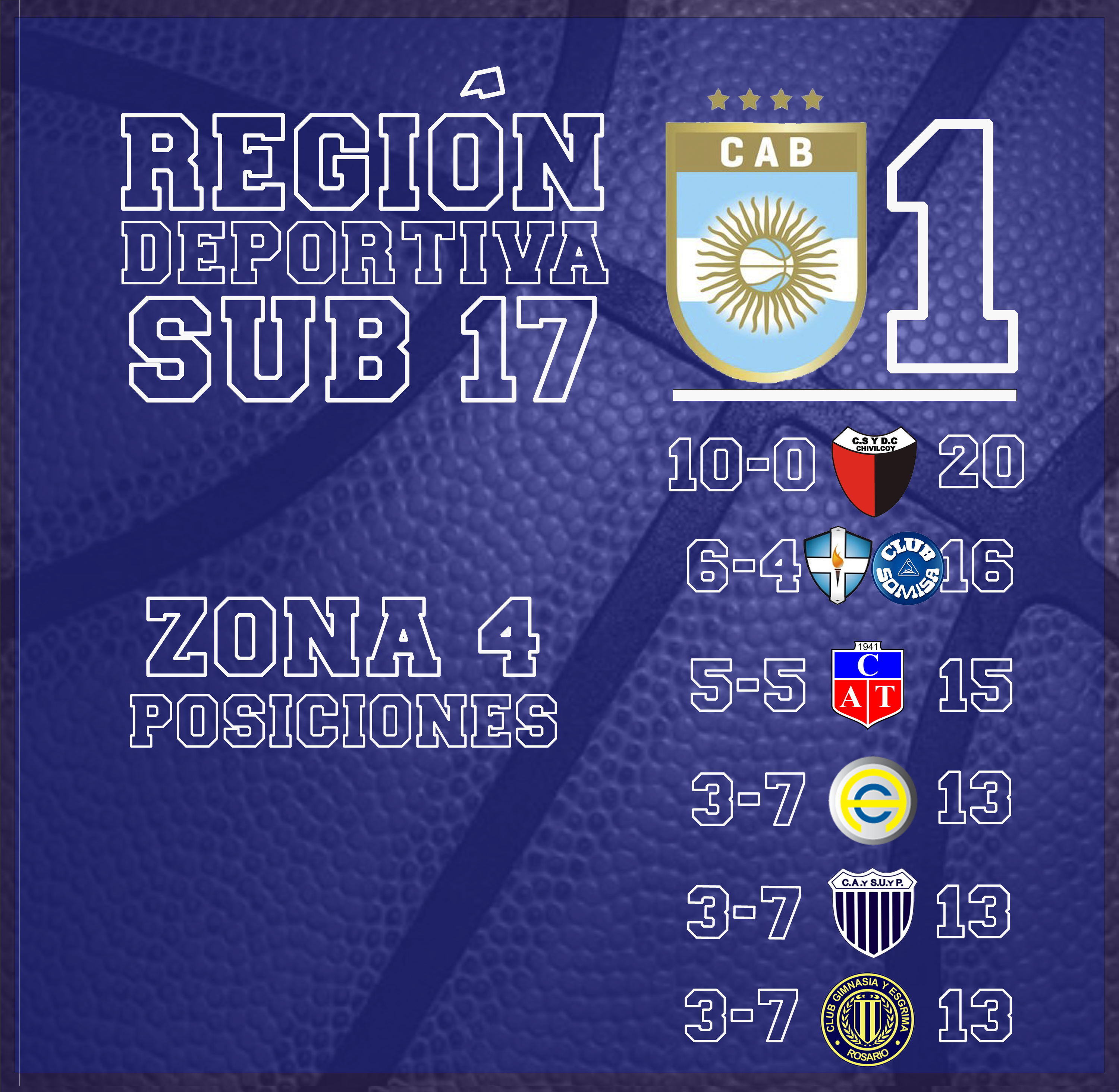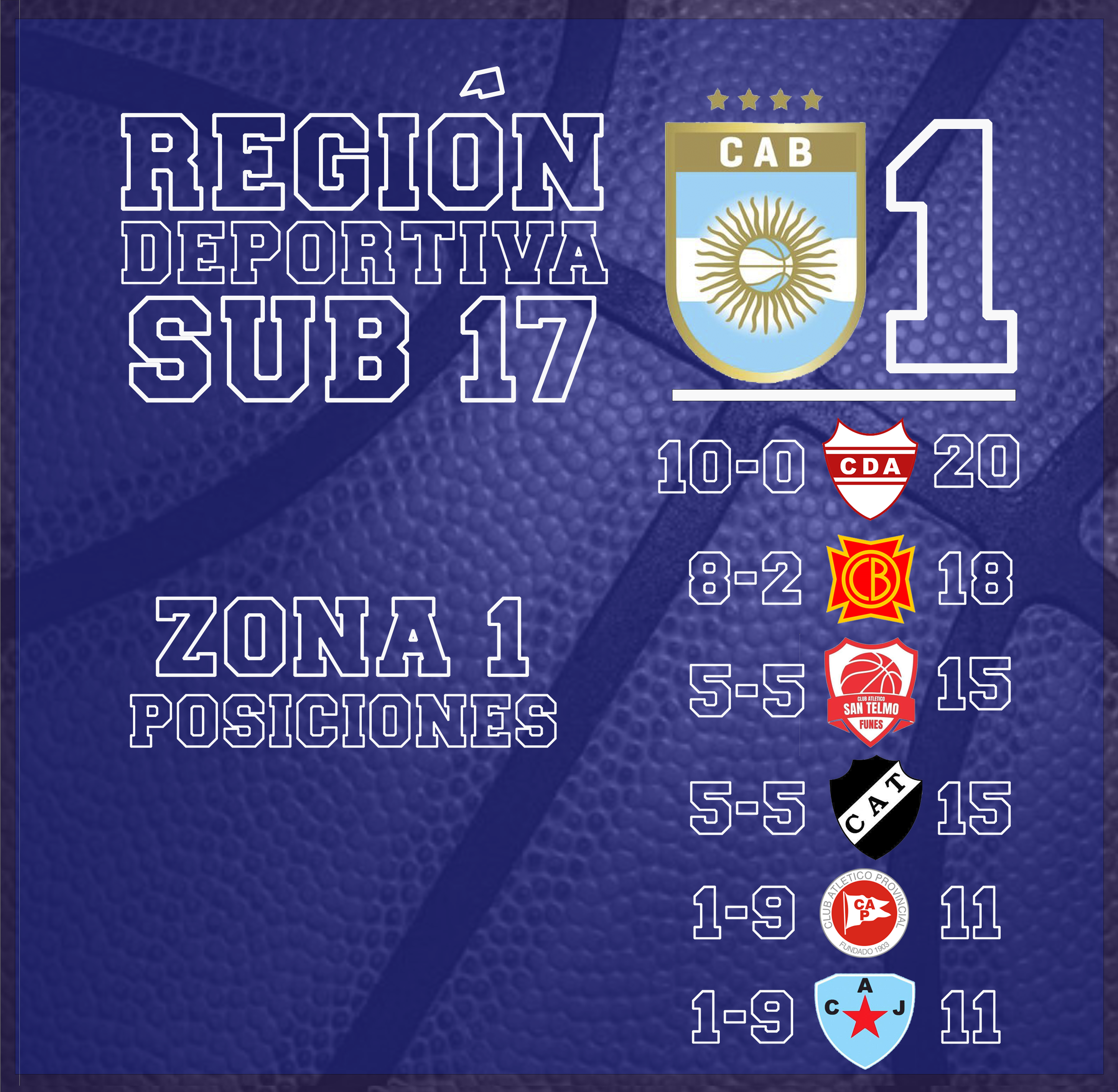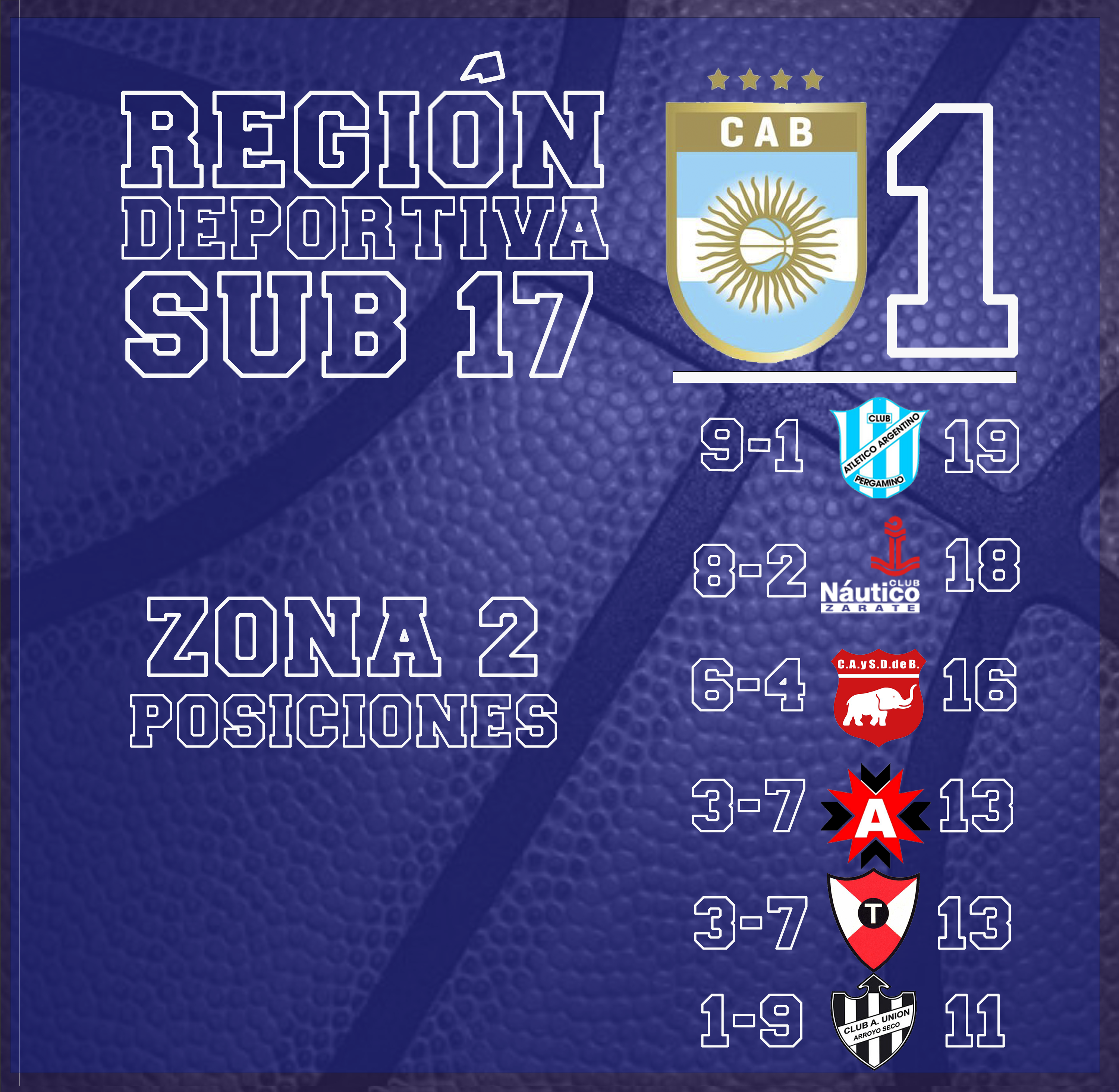Con el triunfo de Deportivo Atenas de Venado Tuerto sobre Gimnasia 78 : 108 quedaron definidos los ocho semifinalistas del torneo Sub 17 de la Región Deportiva CAB 1, accediendo a esta instancia los dos primeros de cada grupo.