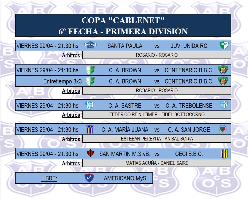 El puntero e invicto, Santa Paula se quedó con el clásico ante Centenario BBC, el resultado final para los de Pancho Blanc fue 67  : 104 que lideran invicto la Copa Cablenet