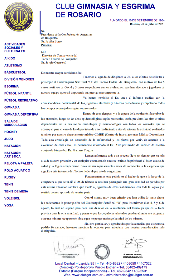 para que el Cuadrangular en Pergamino se realice algunos días después. Podría ser 4, 5 y 6 de agosto#SFB— SANTA FE BASKET (@SantaFeBasket) July 19, 2021