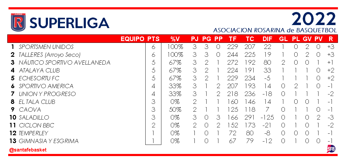 La tercera fecha de la Súperliga siguió con su desarrollo iniciado el viernes, y anoche en el centro rosarino en la casa de GIMNASIA Y ESGRIMA el local hizo su presentación en la élite y nada menos fue ante el subcampeón SPORTSMEN UNIDOS. La victoria fue el Verde 67 : 79