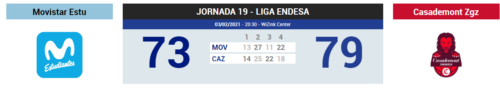 El CASADEMONT ZARAGOZA fue a Madrid y se volvió a casa con los dos puntos tras imponerse 73-79 ante el MOVISTAR ESTUDIANTES