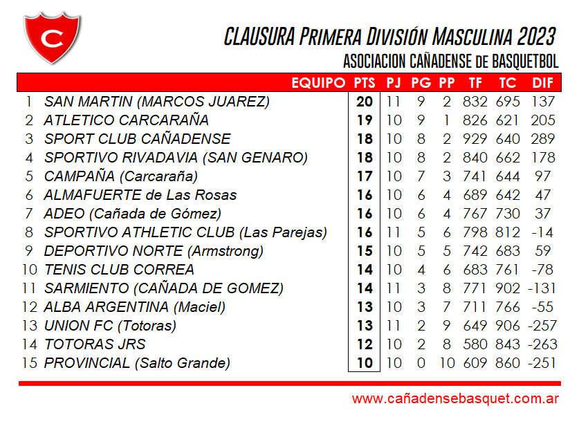 ATLÉTICO CARCARAÑA (83) : Lacava 23, Ramos 2, Giachetti 15, Avalos 18, L.Paoloni 0. R.Dadamo 6, Guillen 6, L.Dadamo 8, Mielejczuk 5 – DT: Federico Giulianelli.-