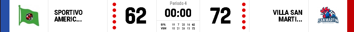 Sportivo América salió a jugar el último capítulo con uñas y dientes pero enfrente el Tricolor estaba firme , sólido y en ningún momento le permitió colocarse a menos de dos dígitos, es más llegó a la máxima de (+14) (58-72) . Así Villa San Martín se quedó con su segunda victoria en fila mientras que América sufrió su primera caída de la temporada.