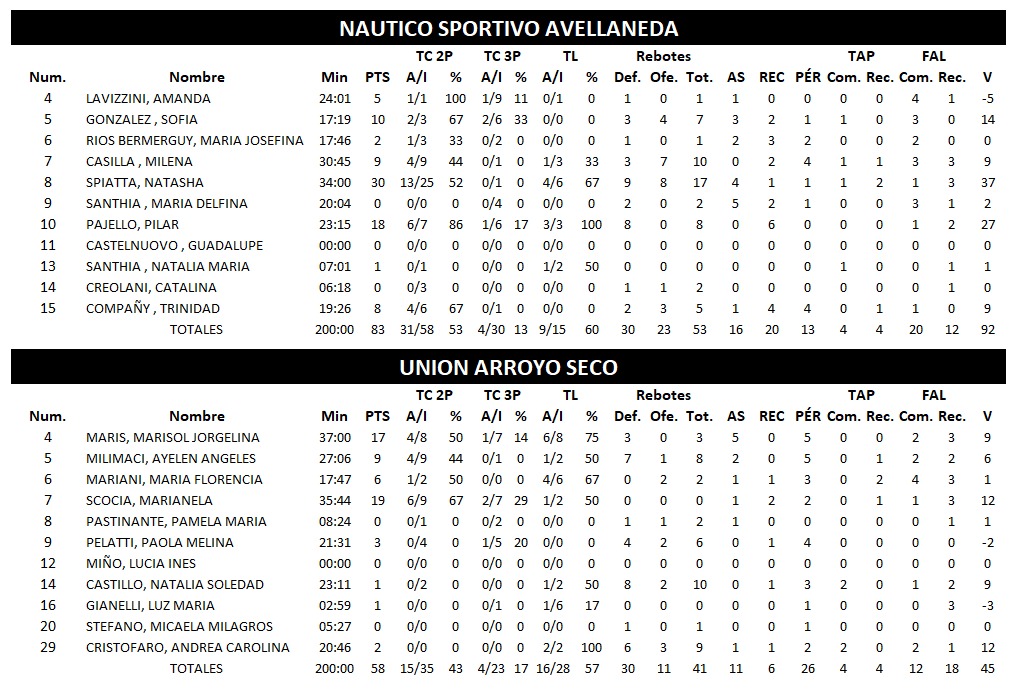 NÁUTICO 83 : 58 UNIÓN ARROYO SECO