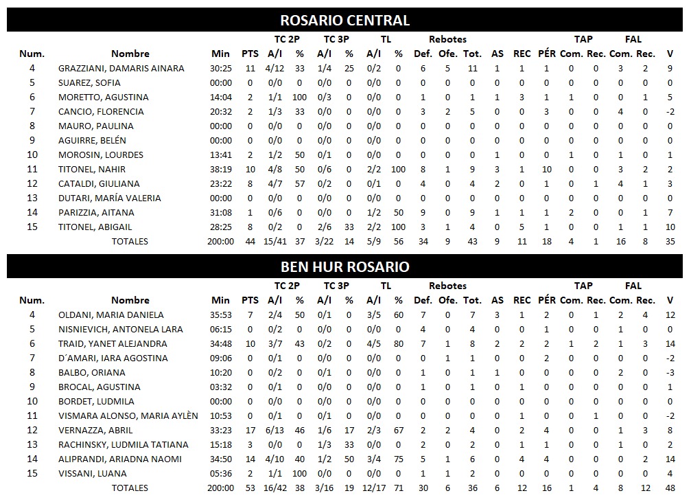 ROSARIO CENTRAL 44 : 53 BEN HUR