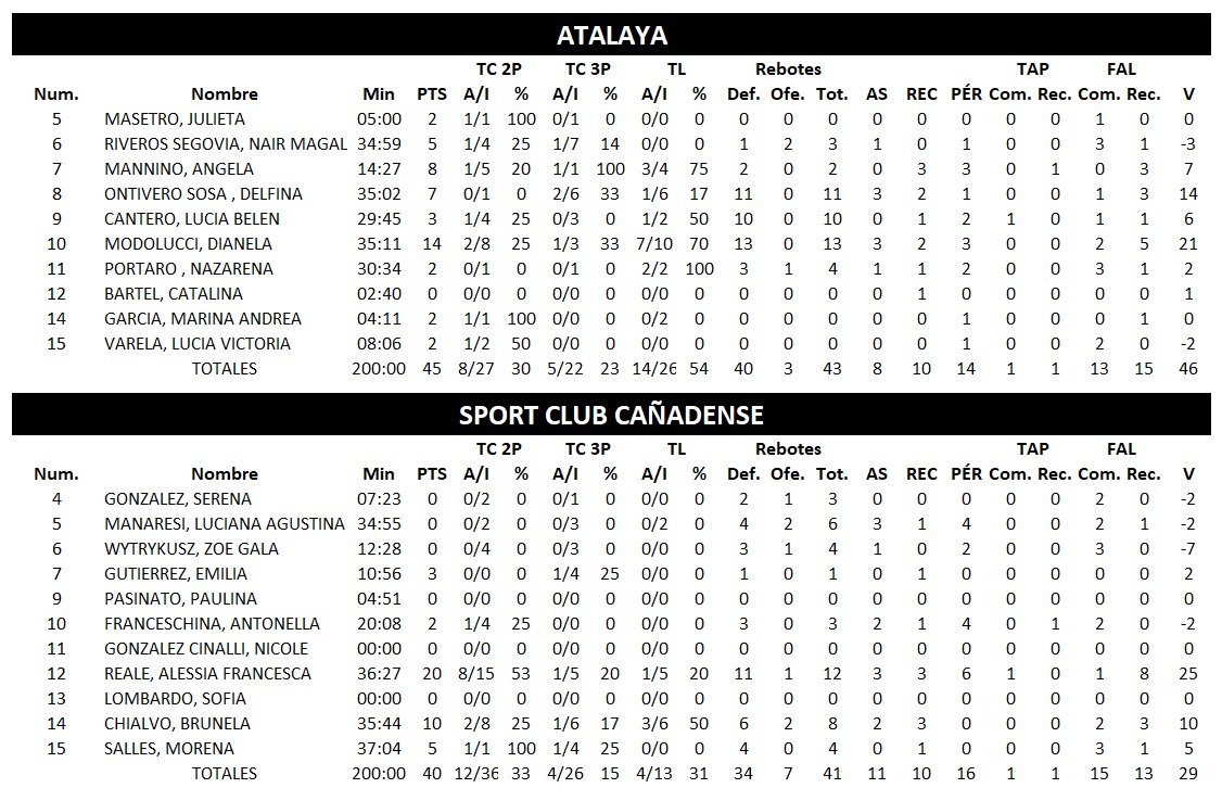 En otro partido de la noche, ATALAYA le ganó a SPORT CLUB 45 : 40 y NAUTICO le volvió a ganar a UNION de Arroyo Seco esta vez por 57 : 83 en calidad de visitante