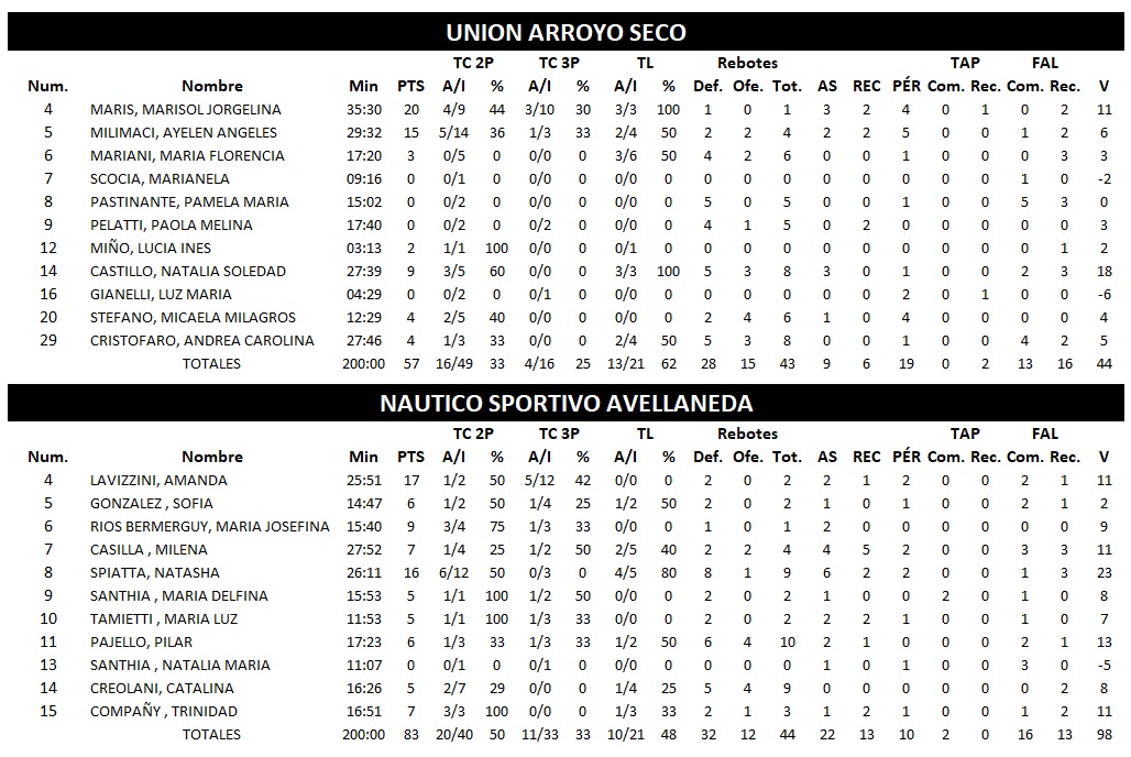 NÁUTICO 83 : 58 UNIÓN ARROYO SECO