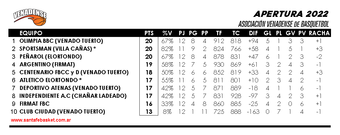 OLIMPIA de Venado Tuerto 82 : 51 DEPORTIVO ATENAS