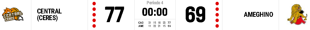 CENTRAL ARGENTINO OLÍMPICO de Ceres (77): Baeza (4); Banegas (19); Spalla (14); Matías Martínez (11); Pablo Martínez (12); Cabrera (3); Fernández (8); Torné (6); Melastro. – DT: Enrique Lancellotti.-
