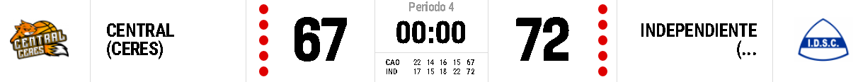 CENTRAL de Ceres (67): Baeza 2, Fernández 2, Spalla 16, Matías Martínez 18, Torné 4, Cabrera 9, Banegas 10, Pablo Martínez 6 – DT: Enrique Lancellotti.
