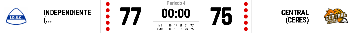 Fue otro partido duro, igualado , disputado de inicio a fin, los dos jugaron en modo semifinal dejando que la decisión sea para cualquiera , sin dudas un tremendo cotejo como se preveía. Esta vez no pudo ser para CENTRAL de Ceres que en la última bola lo tuvo para ganar, fue victoria de INDEPENDIENTE de Oliva 77 : 75