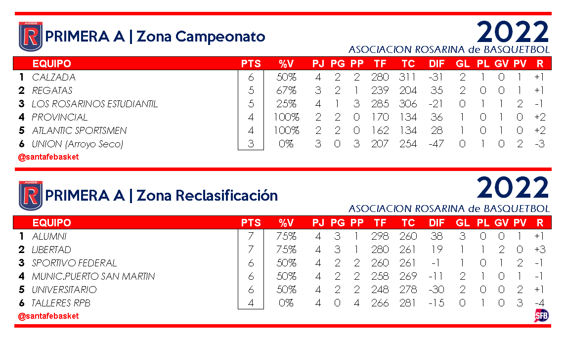 Al mismo tiempo, los tres cotejos previstos de la zona Reclasificación se cumplieron este viernes en ellos LIBERTAD a domicilio se impuso ante PUERTO SAN MARTÍN 62 : 81 , UNIVERSITARIO en la prórroga se quedó con un partido clave tras vencer a TALLERES RPRB 85 : 82 en tanto ALUMNI de Casilda volvió al triunfo ante SPORTIVO FEDERAL. El Alazan ganó 76 :  71