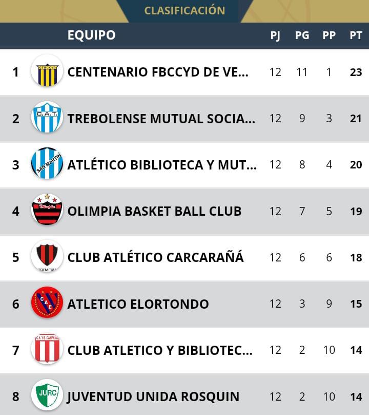 OLIMPIA BBC (85): Santiago García 11, Martín Sánchez 13, Nazareno Pascual 8, Manuel Sagardía 4, Bruno Magnabosco 8, Octavio Lagger 0, Anthony Joseph Jr. 0, Manuel García 30 , Francisco Briñón 11. DT: Marcelo Duffy. –