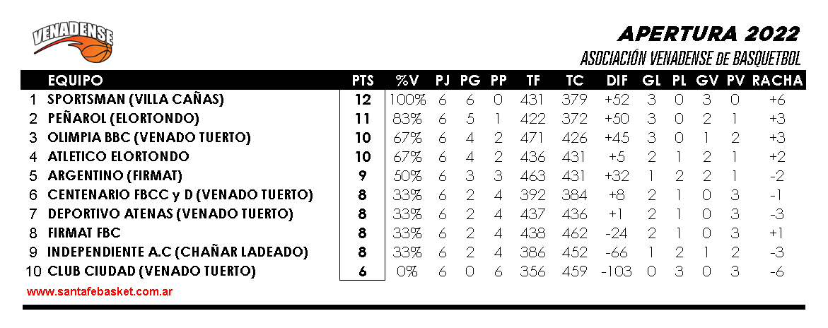 El pasado fin de semana el Apertura de la Venadense vivio su sexta fecha, y en ella SPORTSMEN de Villa Cañas reafirmó su condición de invicto de la competencia tras vencer a DEPORTIVO ATENAS. El «Tren Blanco» lleva seis triunfos en seis partidos y lidera en absoluta soledad la competencia.