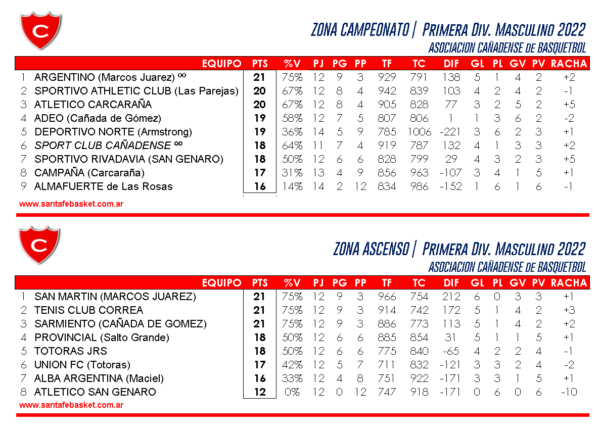 Del mismo modo ATLÉTICO CARCARAÑA en el «Miguel Morel» le ganó a SPORTIVO RIVADAVIA de San Genaro por 57 : 77. Para los de Federico Giulianelli fue la quinta victoria consecutiva que le cortó una interesante seguidilla al elenco de Gonzalo Bogado. Lacava marcó 23 puntos en la victoria rojinegra.