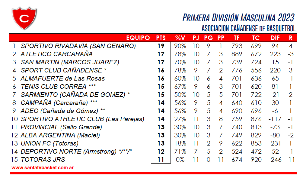 ALMAFUERTE de Las Rosas (65): Bravo 13, Pascual 14, Córdoba 9, Iachini, Dal Colle 2, Falistocco 16, Zabala 1, Bustos 2, Crosta 8. – DT: Ariel Dal Colle.-