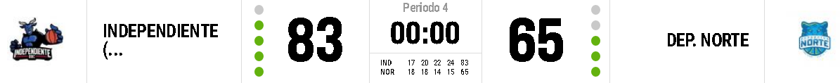 En el complemento Independiente trabajó desde la defensa para ganar el partido , lo hizo de manera inteligente neutralizando la ofensiva armstronense que mermó en su cantidad de intentos producto del esquema planteado por el local. Como sucedió en el primer tiempo Norte durante la segunda mitad nunca más tomó la conducción del partido, tuvo un lapso sobre el final del tercer período donde de estar 58 :42 acortó 59 : 50 en dos minutos y fracción. Apenas iniciado el cuarto capítulo , Independiente acertó y se volvió a escapar , el triple de Celestino Cupulutti promediando el segmento (74 :59) ilusionó hasta ahí , con celeridad el dueño de casa sacó diferencias definitivas sellando la clara victoria de 83 :65