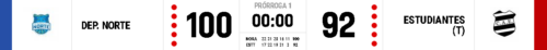 Durante la primera parte del encuentro y también en el tercer segmento Norte dominó completamente las acciones donde llegó a sacar una ventaja máxima de 19 puntos. Las Cebras promediando el último cuarto lograron bajar la diferencia a menos de dos dígitos y a base de conversiones desde los 6,75 mts y una firmeza defensiva igualaron el cotejo llevando el mismo al suplementario.