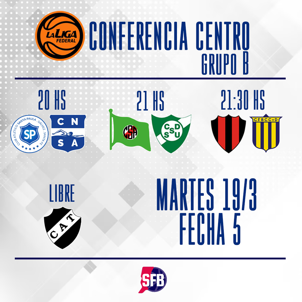 El grupo B disputará en su totalidad la quinta fecha este martes 19 como está previsto en el calendario de la Liga Federal.