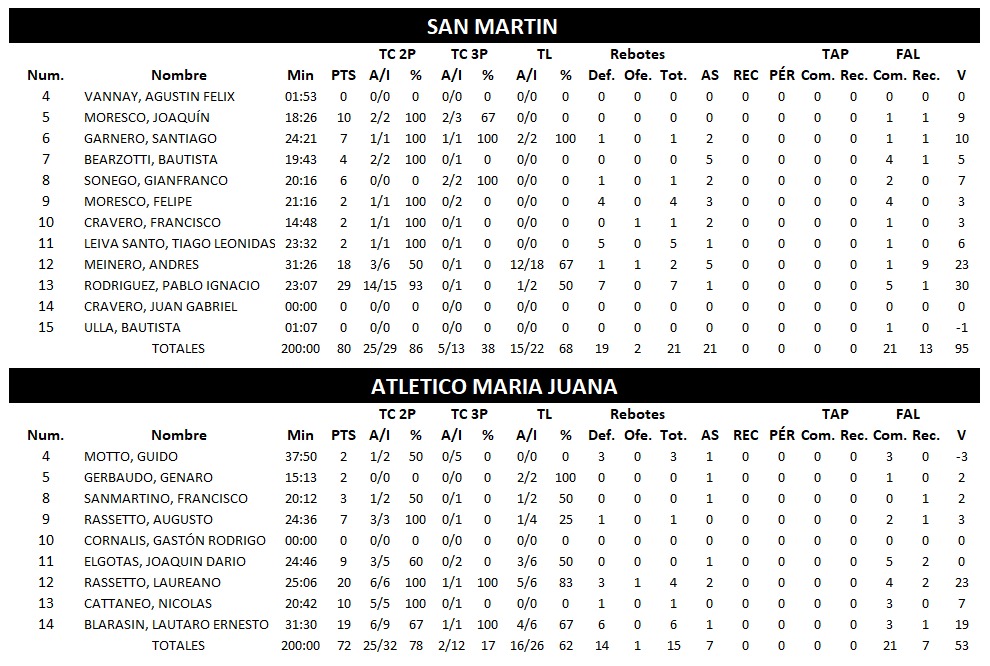 La Reclasificación del Clausura tuvo su primer enfrentamiento. Favoreció a SAN MARTÍN de Carlos Pellegrini que eliminó a ATLÉTICO MARÍA JUANA venciendo 80 : 72 . Los pellegrinenses tendrán como rivales a TREBOLENSE en la instancia de Cuartos de Final