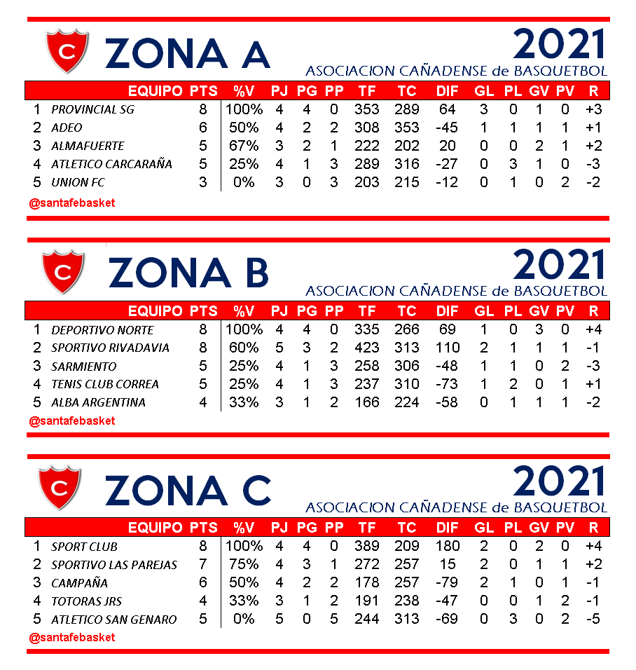 SPORT CLUB CAÑADENSE (102): Giacchetti 11, Joaquín De la Fuente 2, Paoloni 14, Avenali 4, Palazzesi 6, Montani Wortzel 29, Delbon 9, Reale 11, Luchetti 2,  Lucas De la Fuente 5,  Pirani 9.- DT: Federico Giulianelli.