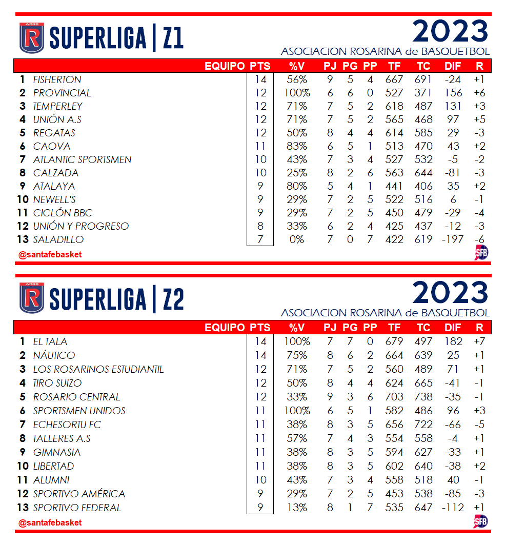 TIRO SUIZO (73): Bisiach 25, Varela 6, Molina 16, Tosoni 12, Talotti 2, Micheletti 2, Leal 5, Landa 0, Cavallaro 0, Magrini 5. – DT: Leandro Noguerol.-