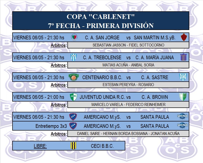 La sexta fecha de la COPA CABLENET trajo estos resultados , en ellos se deben señalar los triunfos visitantes de CECI BBC , CENTENARIO y TREBOLENSE.