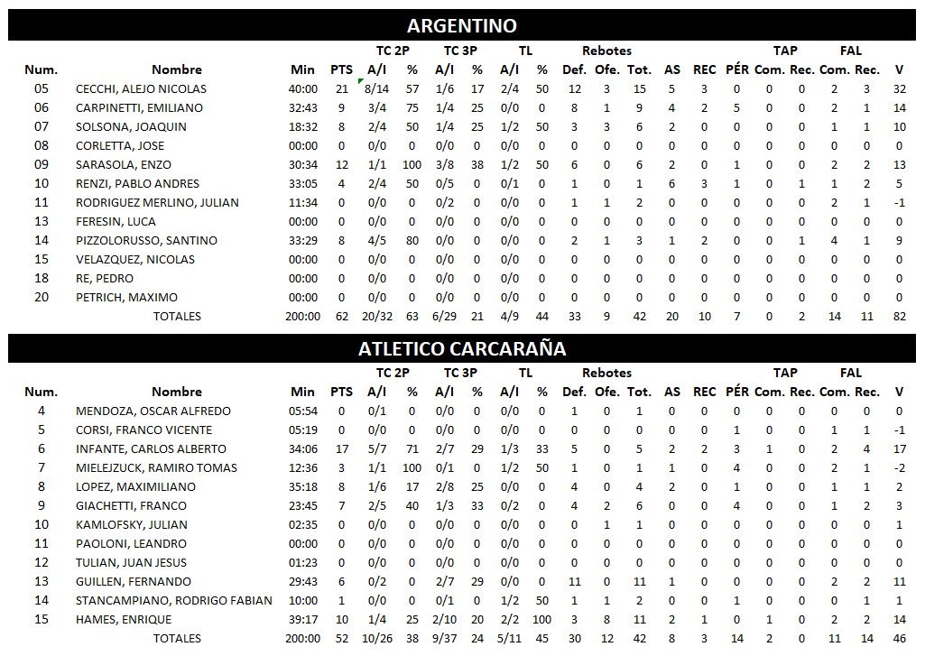ARGENTINO Marcos Juárez (1) 62 : 52 (0) ATLÉTICO CARCARAÑA