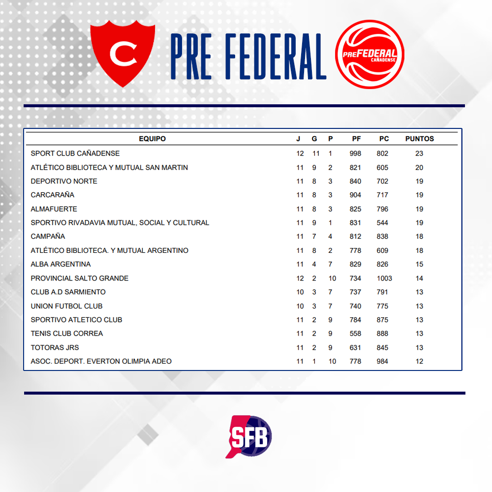 Se jugó la duodécima fecha de la Pre Federal. En el Varni la versión «Tigre Aguilar» de Sport Club no para de ganar , anoche loa cañadenses vencieron a Almafuerte de Las Rosas y clasificaron directamente a Cuartos de Final a falta de tres jornadas para la conclusión de la fase regular.