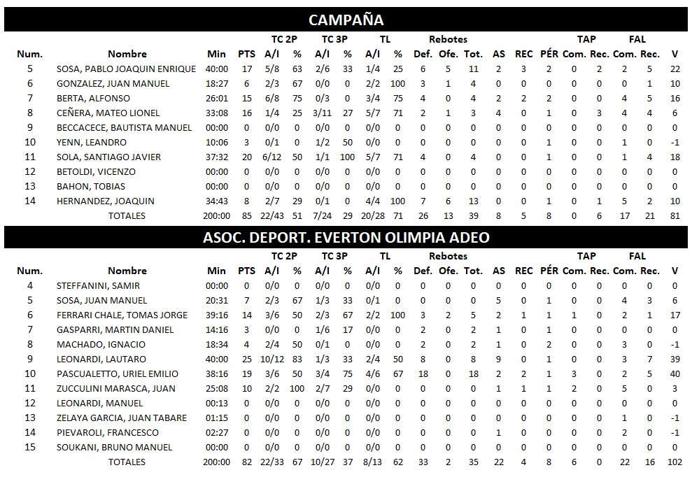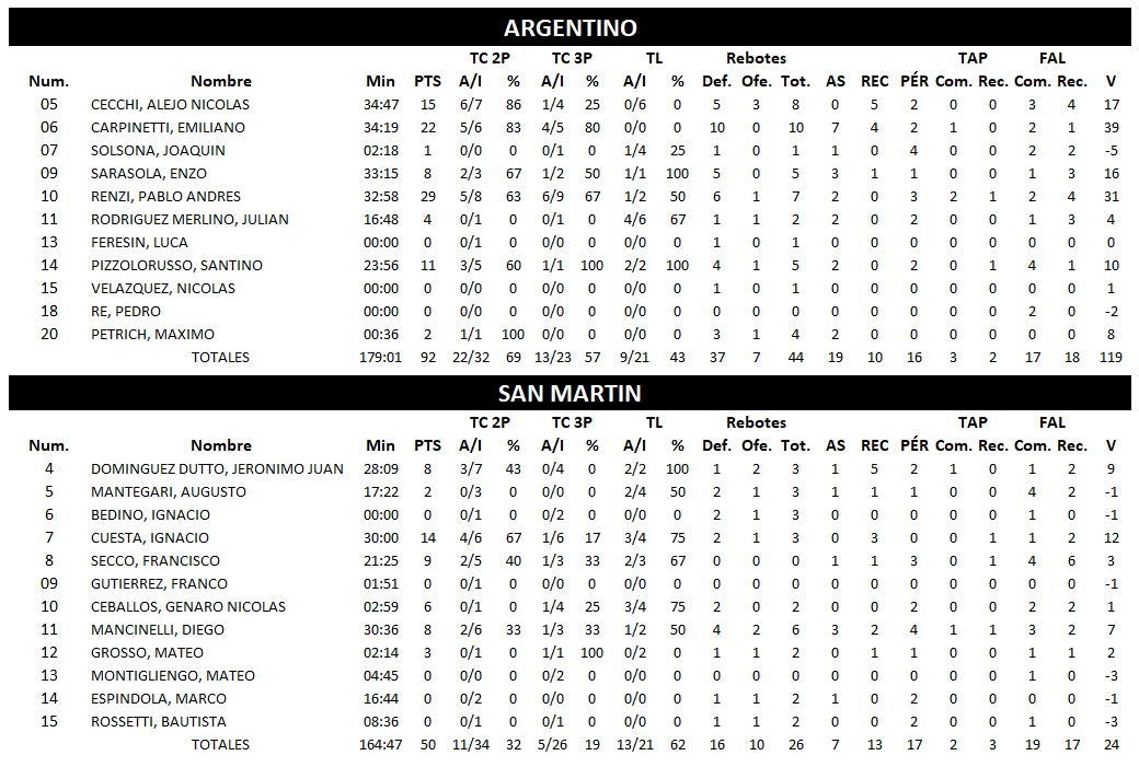 Anoche con un Pablo Renzi con 29 puntos (6/9 T3) y valoración de 31 intratable para la visita y un funcionamiento colectivo armónico, el local se impuso 92 : 50 .