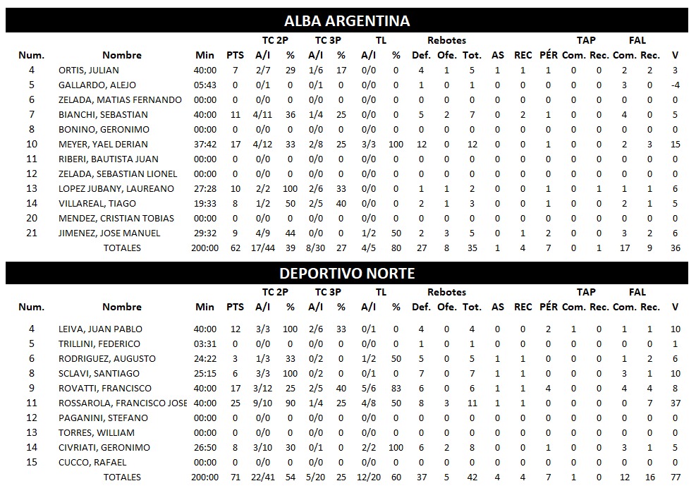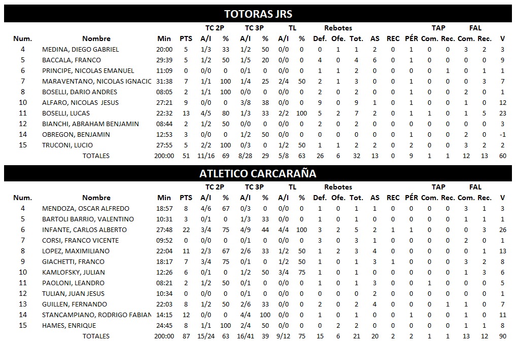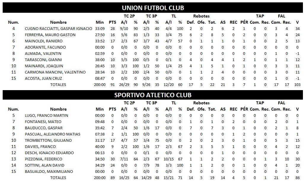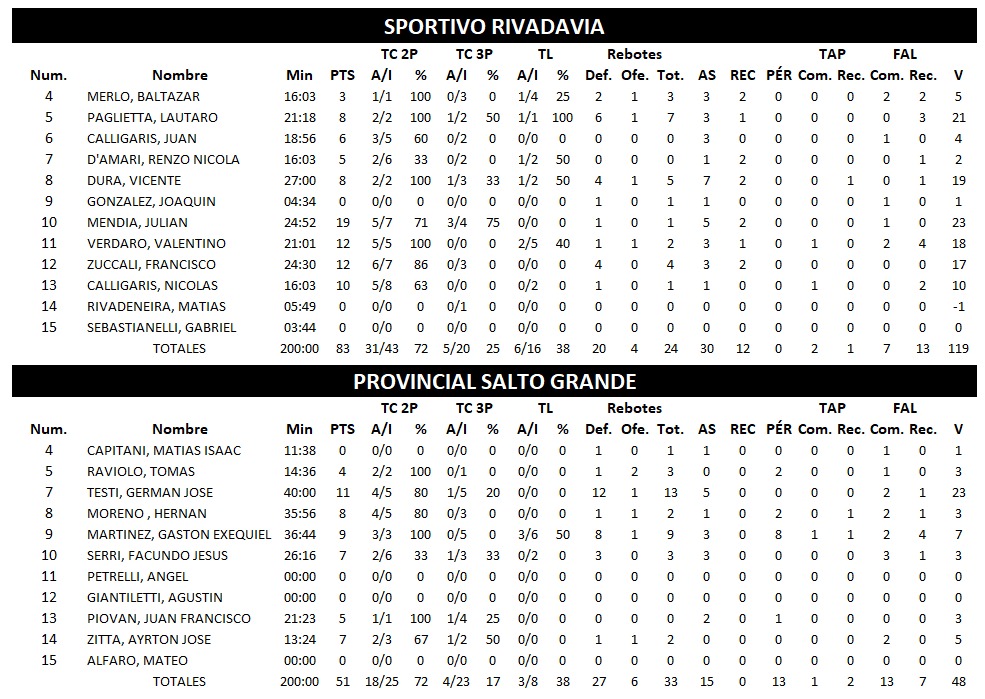 También en la fecha de este viernes, ganó SPORTIVO RIVADAVIA frente a PROVINCIAL de Salto Grande 83 : 51 y ATLÉTICO CARCARAÑA dio cuentas de visitante ante TOTORAS JRS por 51 : 87